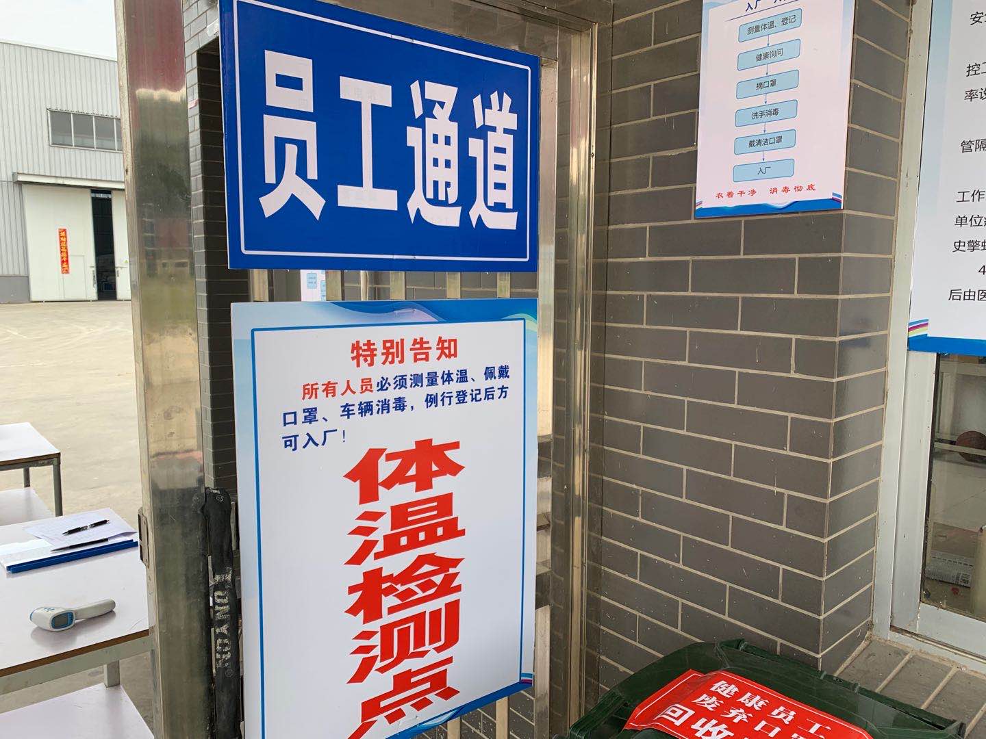 4.嚴(yán)格控制人員進(jìn)出、加強(qiáng)安保,外來(lái)人員嚴(yán)格控制并登記,出入口設(shè)卡檢測(cè)體溫、觀察是否有咳嗽等癥狀;
